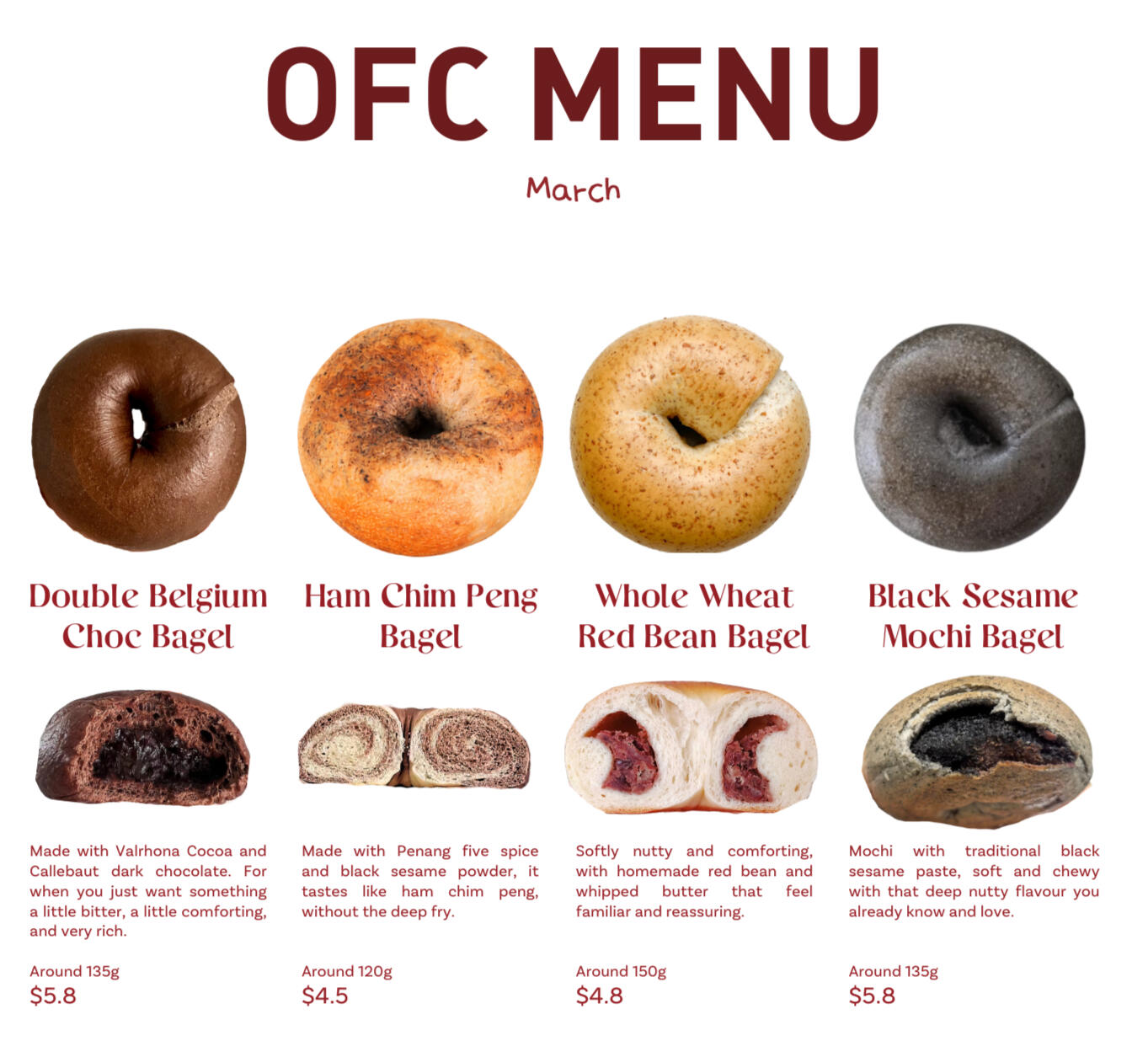 We’re the home of NY style natural yeast bagels with crunchy crust and soft, chewy center.We bake bagels and less-sweet pastries every Saturday in Beauty World, Singapore. Preorder your weekend treats below.All bakes are made to order, kindly place your order 48 hours in advance.